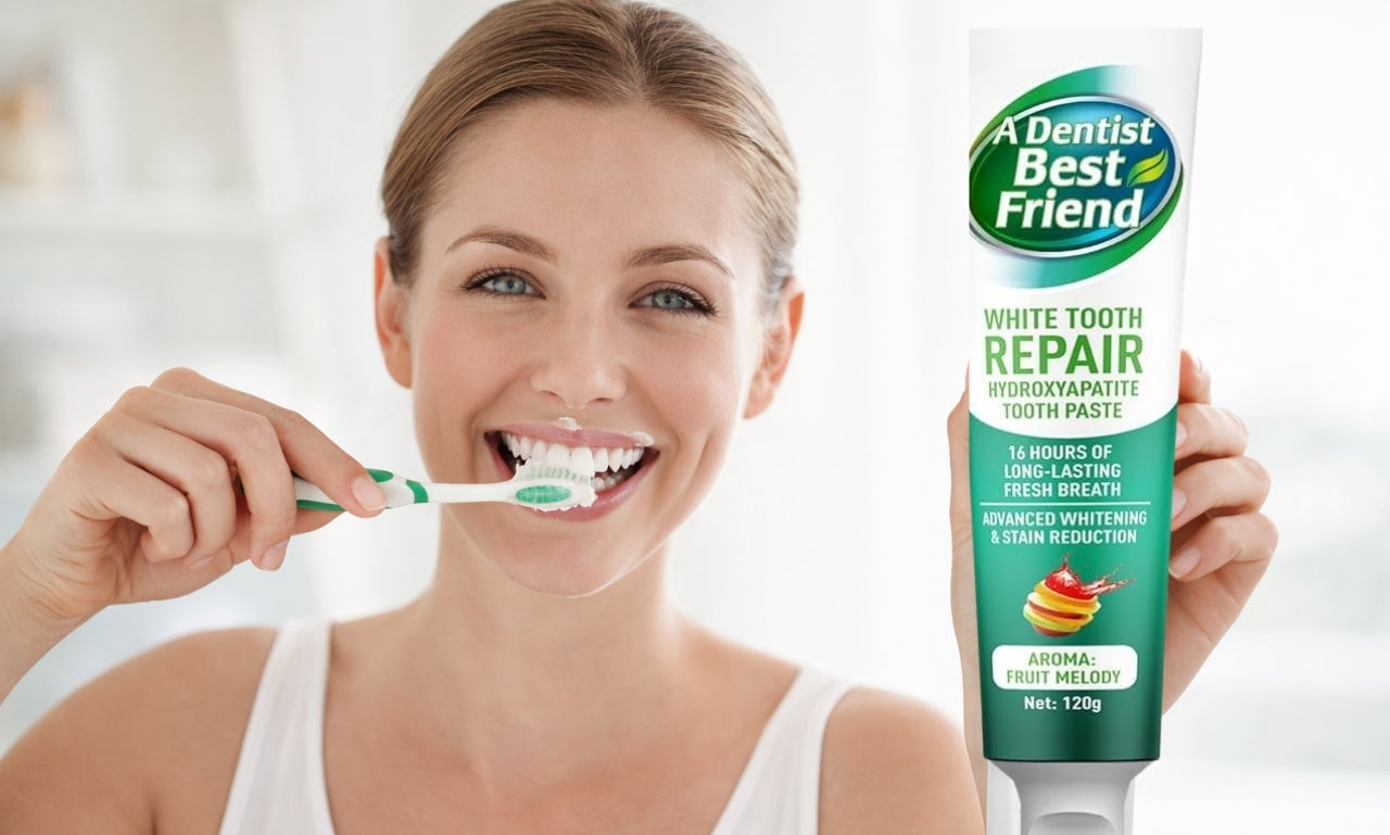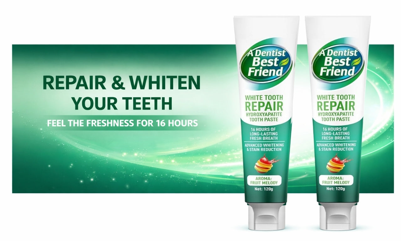 Our White Tooth Repair Hydroxyapatite Toothpaste represents the core of our brand expertly formulated to strengthen enamel, support natural whitening, and deliver long lasting freshness with every use.
